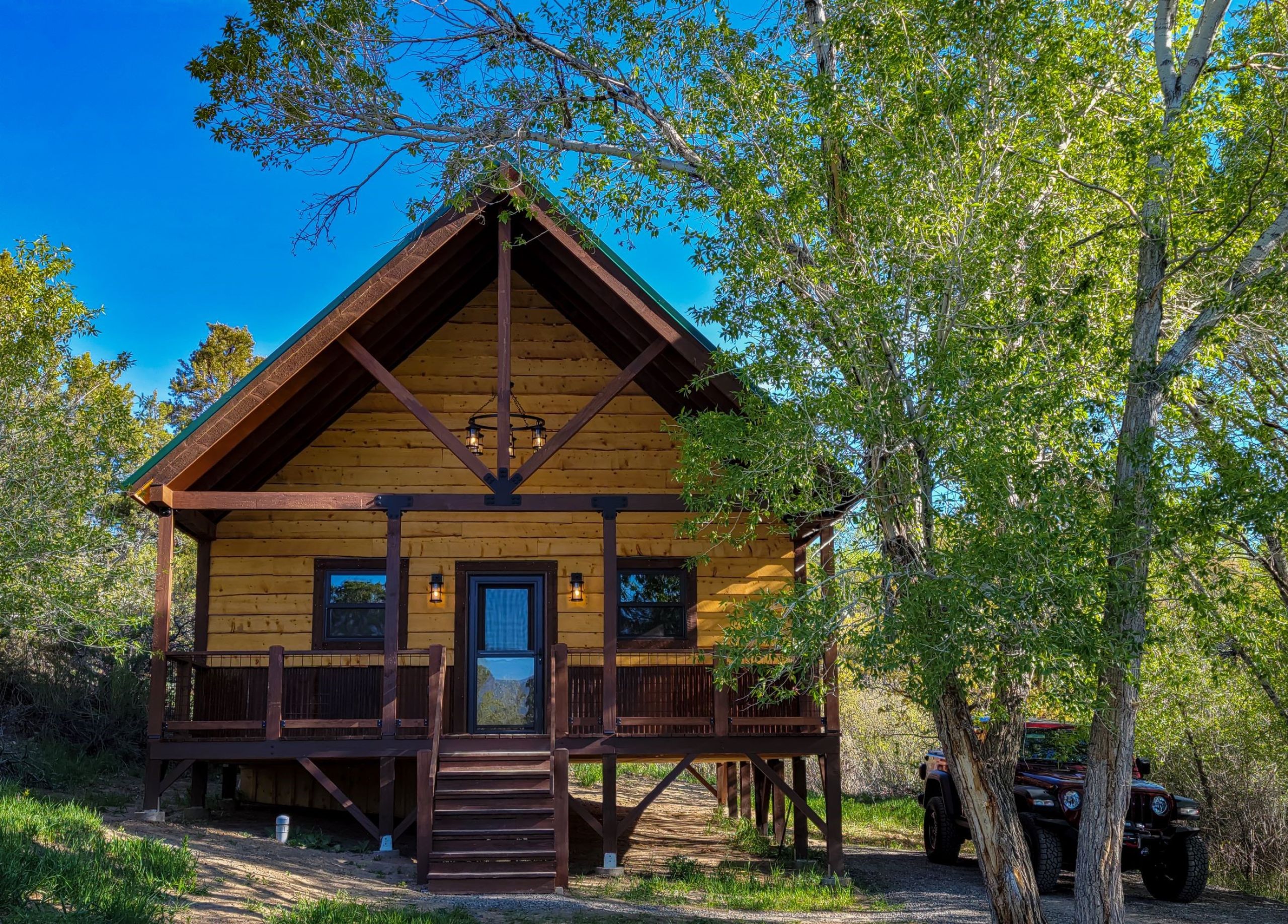 Camp7 is located in Collbran, Colorado and offers several types of accommodations, including a newly built modern two-bedroom cabin and two safari tents.